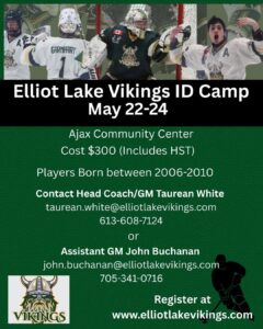Attention those who may be looking to play junior hockey up north next season: Elliot Lake Vikings of the Northern Ontario Jr. Hockey League have an upcoming tryout camp planned.