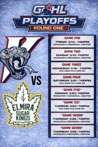LaSalle Vipers will be in tough against the Elmira Sugar Kings in the first round of the upcoming Greater Ontario Hockey League Western Conference playoffs.